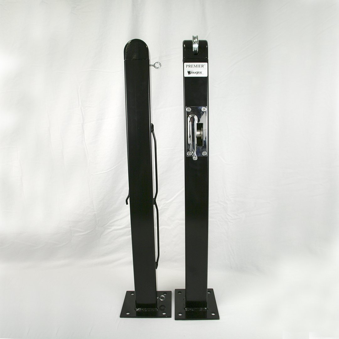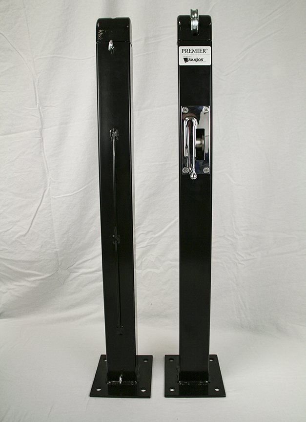 The Douglas® Premier™ post series are all internally wound featuring a self-locking gear mechanism that prevents recoiling during winding. The main gear is constructed of plated steel while the small gear is case-hardened. The internal gear function is a 30:1 ratio, ensuring smooth and easy operation. The gear housings and caps are made of cast aluminum alloy. The posts flush mounted gear plate cover and removable handle are chrome plated.