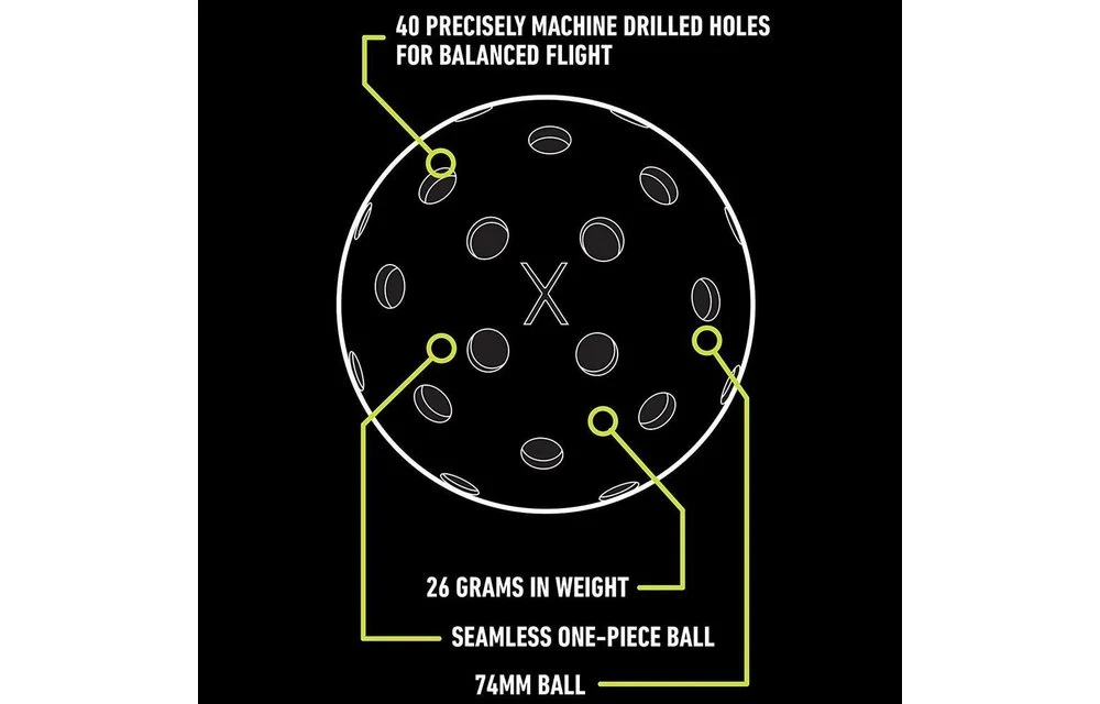 • PRECISION DESIGN: X-40 pickleballs are constructed with 40 precise, machine-drilled holes for a balanced flight pattern and tight, reliable spin that is consistent from ball to ball