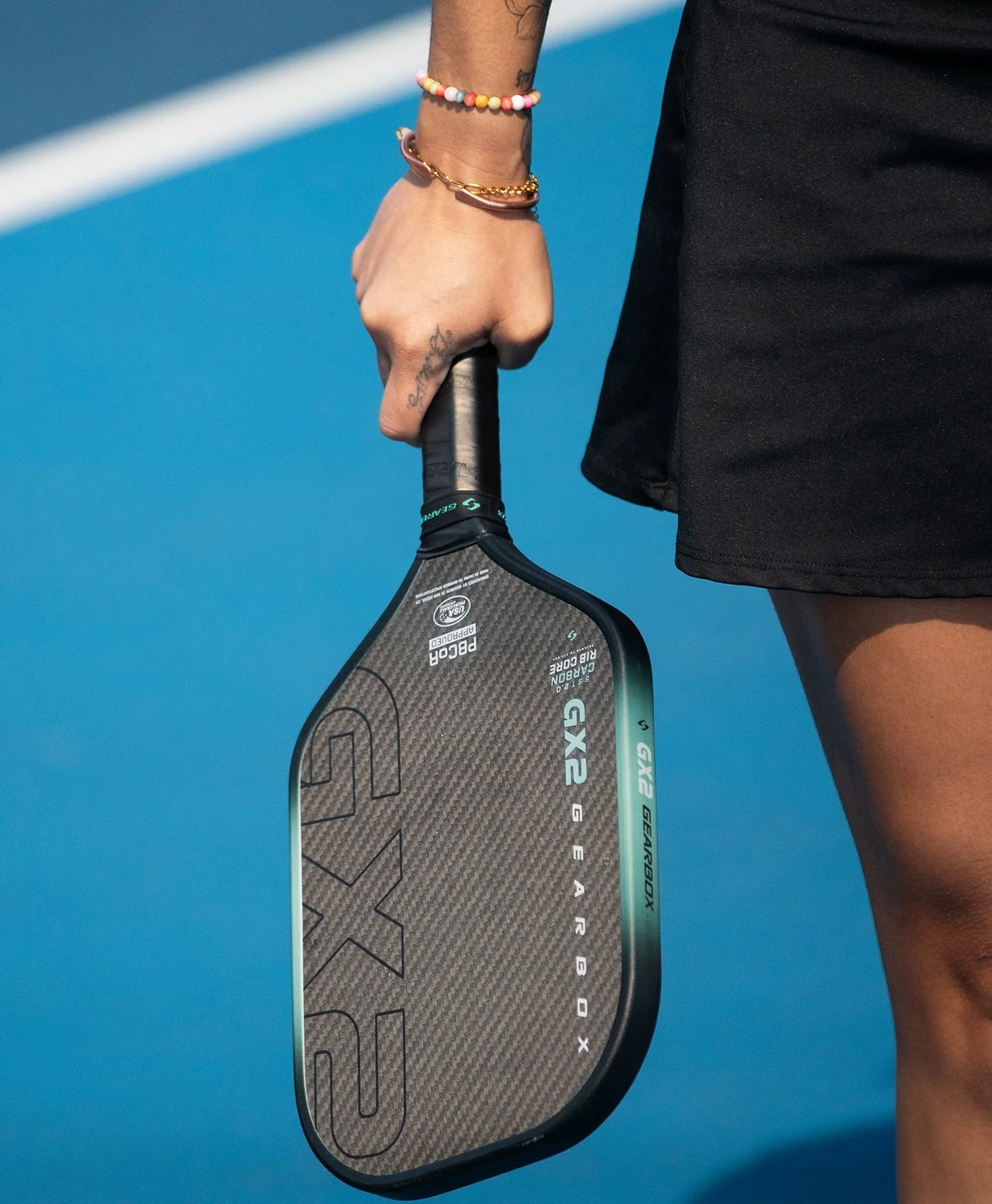 Introducing the GX2, powered by the revolutionary SST 2.0 CarbonRibCore™—the next generation of paddle technology. GX2 delivers exceptional power, consistent performance, and enhanced control, providing a responsive connection with every shot. While it may resemble a traditional honeycomb paddle at first glance, the GX2 is truly in a league of its own. Designed for unmatched stability and durability, it boasts four times the strength of traditional honeycomb cores and twice the strength of closed-cell foam paddles. The result is a paddle that seamlessly blends precision and power, maintaining the familiar honeycomb paddle feel, expanding the sweet spot, and enhancing carbon fiber strength for next-level performance.