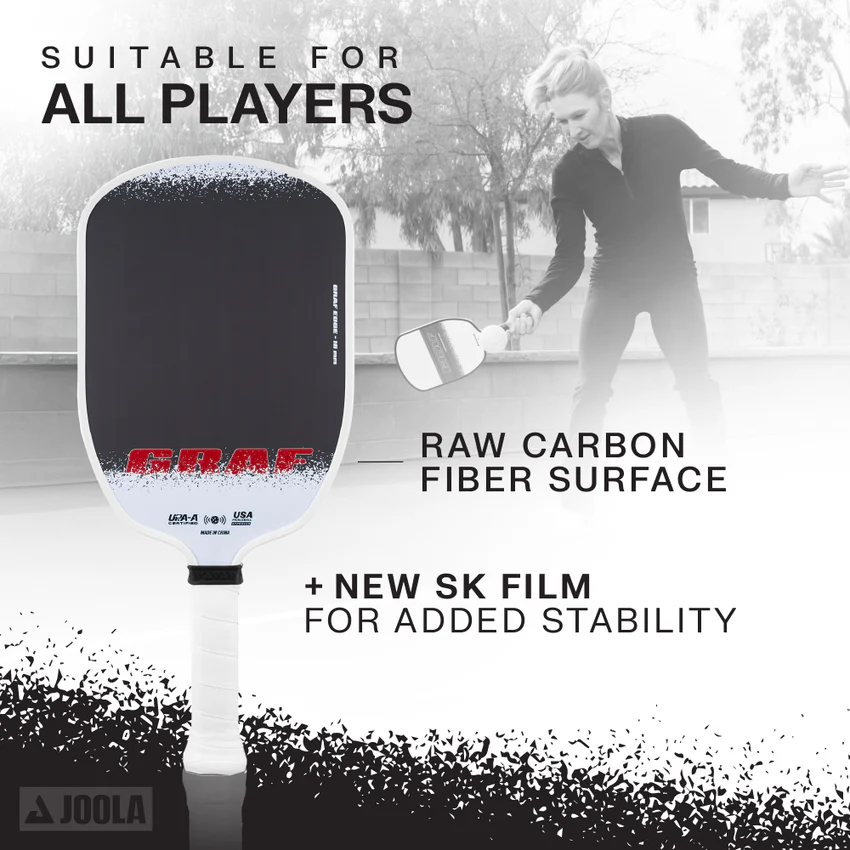 Find your rhythm and elevate your game with the Graf Edge 16mm pickleball paddle. For the beginner, intermediate and beyond, this paddle is your gateway to understanding your game. Featuring the new Agassi shape with an expanded sweet spot, experience more forgiveness on off-center hits. Seamlessly switch between power, finesse, and spin with the combination of honeycomb core and raw carbon fiber surface. Step onto the court. Don’t hold back. The next chapter of your pickleball journey starts now.