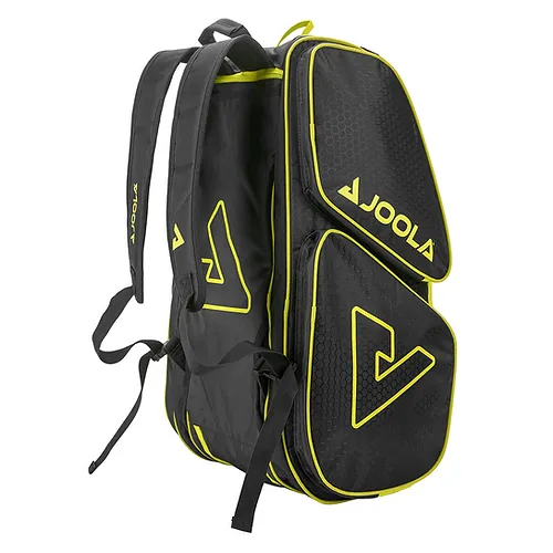 The JOOLA Tour Elite Pro Pickleball Bag is the big pickleball paddle bag you’ll see JOOLA’s pro pickleball players using. With room for all of your pickleball equipment, this bag will hold everything you need for a full day at the courts. Or use it as carry-on luggage to keep all of your pickleball paddles, pickleball balls, and gear as close as can be on the way to tournaments or a pickleball vacation. The Tour Elite Pro Bag is heavy on features and utilities. This includes the standard for any pickleball bag, a big, strong hook for attaching to the fence along with a pocket for it to hideaway. If you ever have to leave your pickleball paddle in the car or play where it gets hot, the thermal lined paddle compartments protect your rackets from extreme heat. You will also appreciate the dozen or so different storage areas to keep even the biggest pack rat or pickleball gear junkie organized and ready to play. It can even transform itself from a backpack to a pickleball duffle bag, just tuck the backpack straps in the special sleeve.