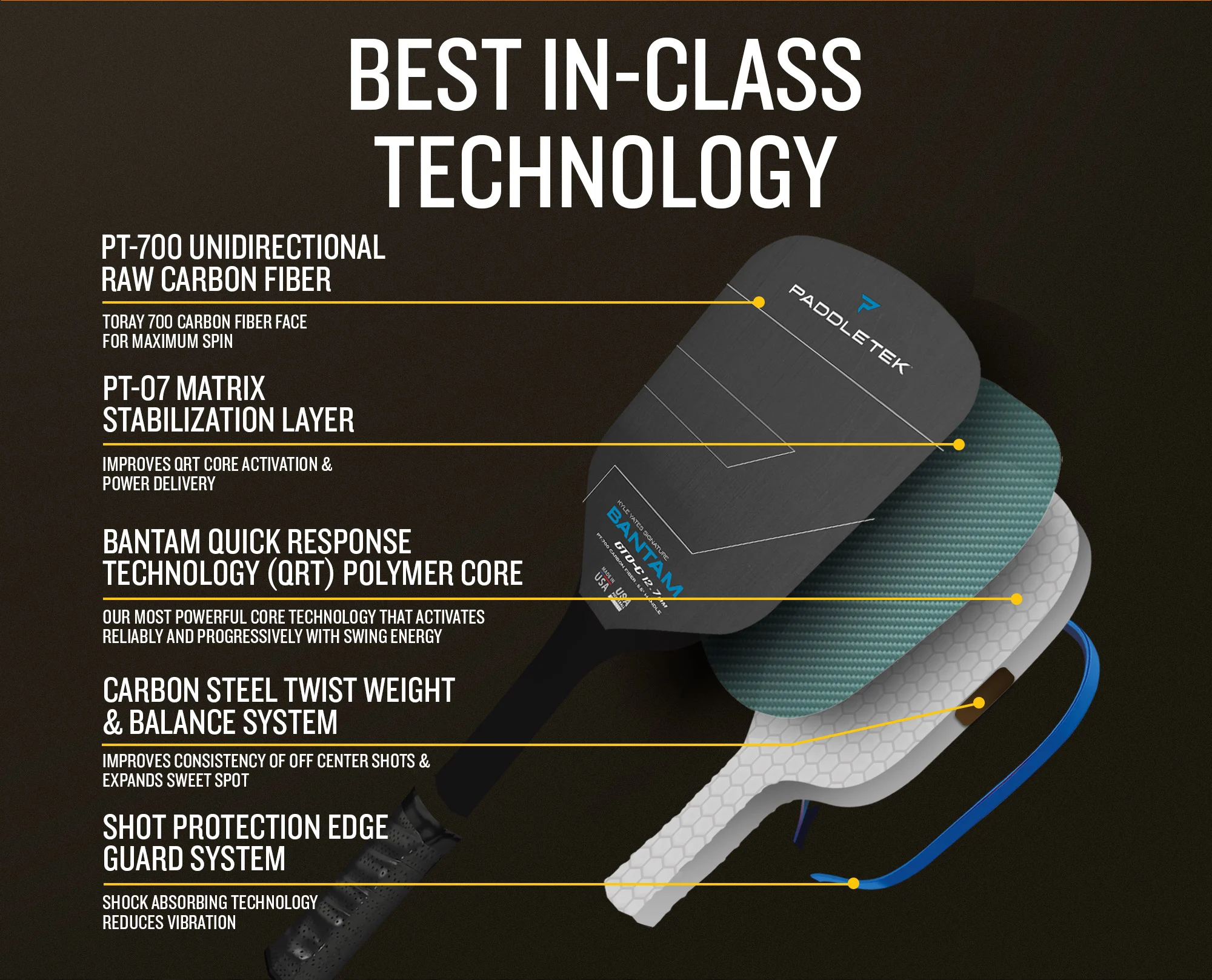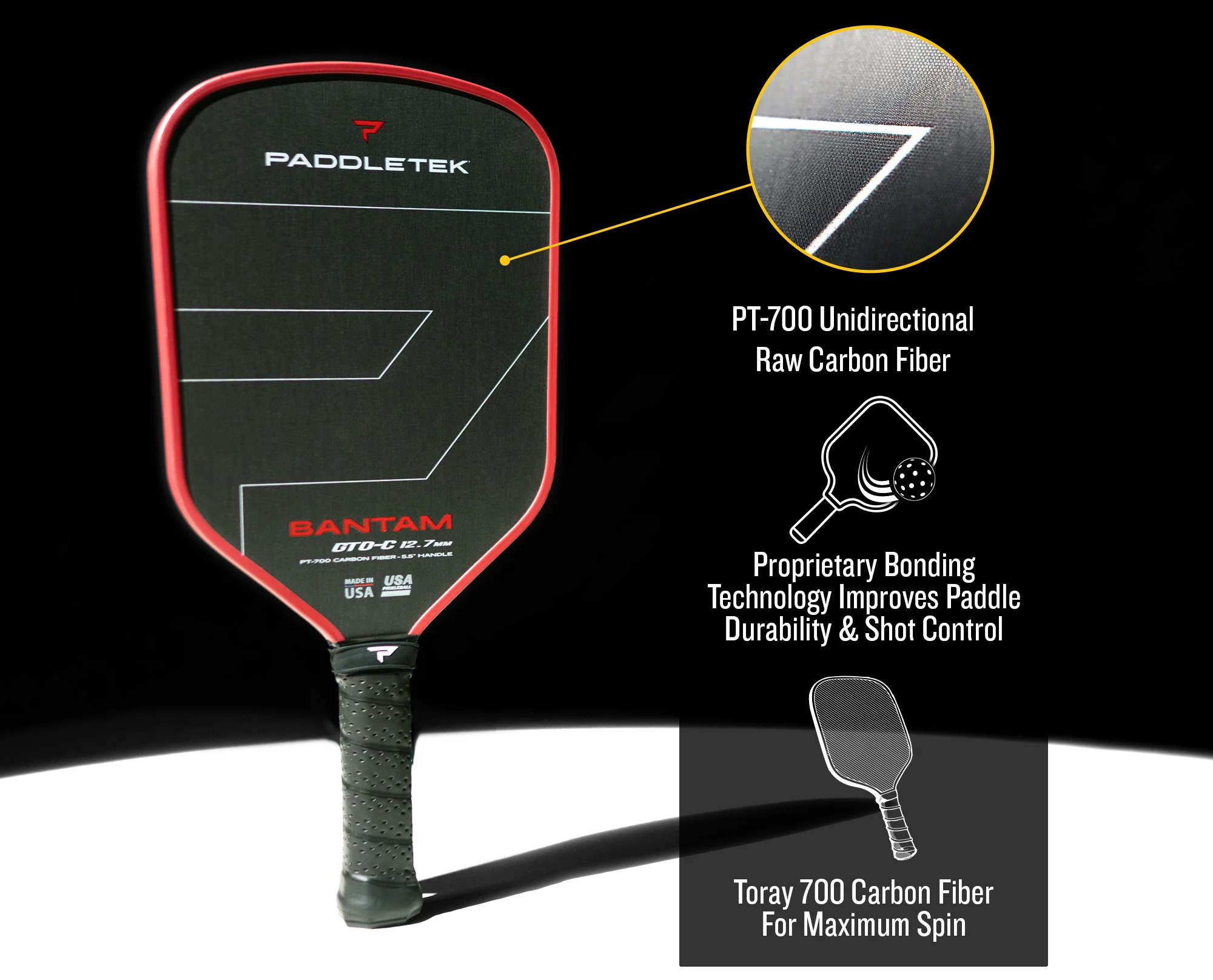 • PT-700 Unidirectional Raw Carbon Fiber: Toray 700 carbon fiber face for maximum spin.