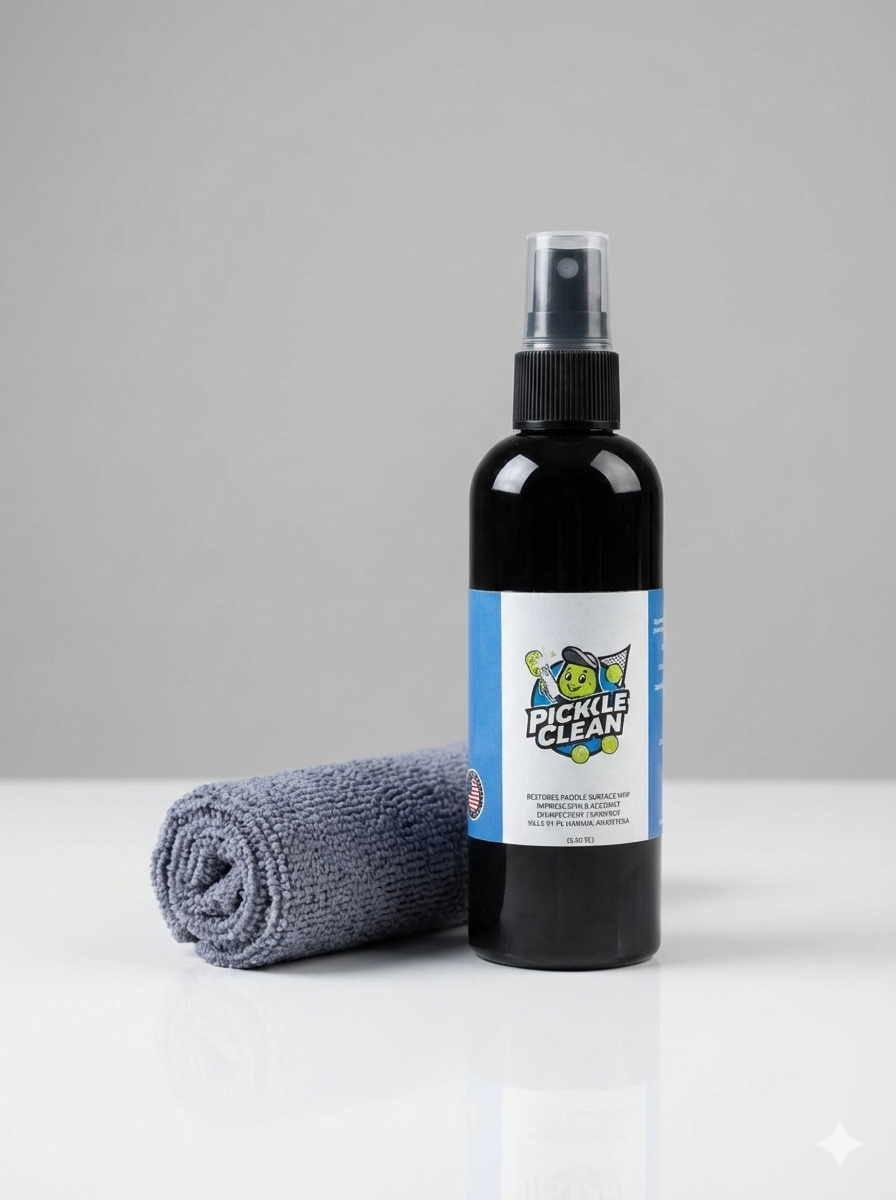 PickleClean™ is a premium paddle cleaning spray specifically designed to deep-clean pickleball paddle faces more effectively than traditional erasers. Engineered to remove dirt, ball residue, oils, and buildup, PickleClean™ helps restore surface texture and consistent spin—without damaging your paddle.