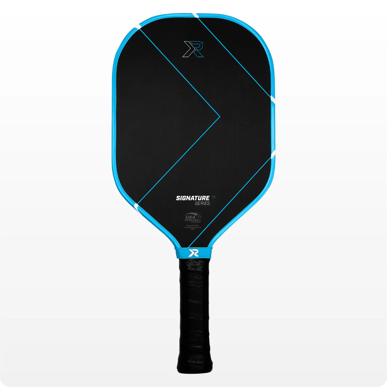 The paddle with the strongest shots from groundstrokes to the kitchen line! The Signature Series features our famous T700 Ultra-Raw Carbon for maximum grit and a thermoformed edge guard for better consistency. The 6” handle allows for wicked two-handed backhands and more flexibility for shot shaping. The paddle provides incredible strength and finesse at the same time.