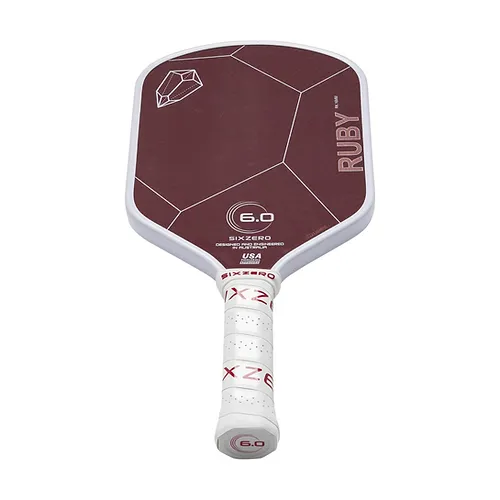 The Six Zero Ruby is a world-first paddle that uses 100% Aramid fiber, sourced from DuPont™ Kevlar® as its face material. The face material has a unique combination of high strength and toughness. It has high impact resistance and is durable (abrasion resistant), meaning the paddle surface should last a long time and be more resistant to wear than existing carbon fiber-faced pickleball paddles. In addition, the cross-weave cloth pattern provides a bump in spin, grip, and feel. The way the face grabs the ball stands out along with the power generated. Six Zero spent over 10 months developing the Ruby! You will notice the difference between existing face materials and Kevlar® with the Six Zero Ruby.